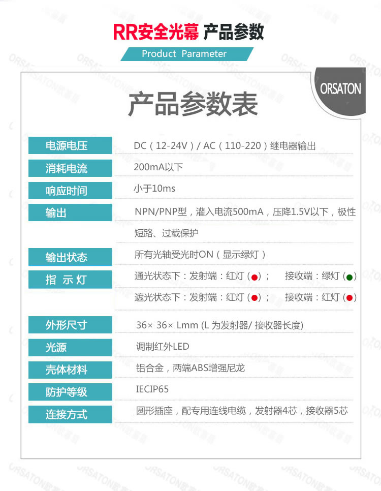 广州欧塞盾电子科技有限公司-防水光栅光幕40毫米密度光轴间距型号:RR04/40-120,RR06/40-200、RR08/40-280、RR10/40-360、RR12/40-440、RR14/40-520、RR16/40-600、RR18/40-680、RR20/40-760、RR22/40-840、RR24/40-920、RR26/40-1000、RR28/40-1080、RR30/40-1160、RR32/40-1240